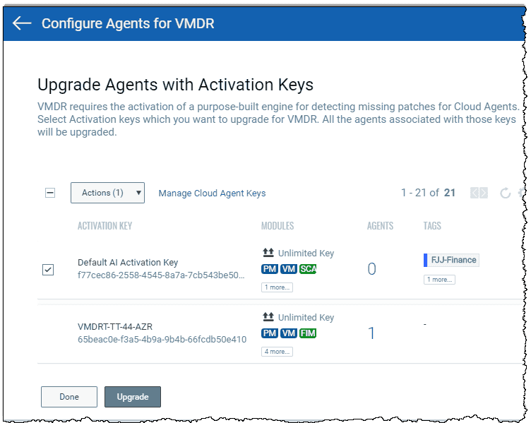 select the desire activation key and click Upgrade . The select activation key will be upgrade forvmdr.