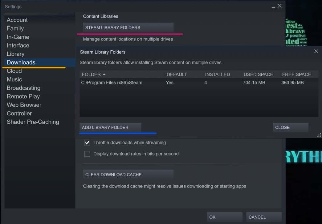 - ProceedDownloads Tab Click on Steam Library Folder. Now you can click on “Add Library Folder” make a folder in your SSD Drive. Once done, your future games will all download in this folder.