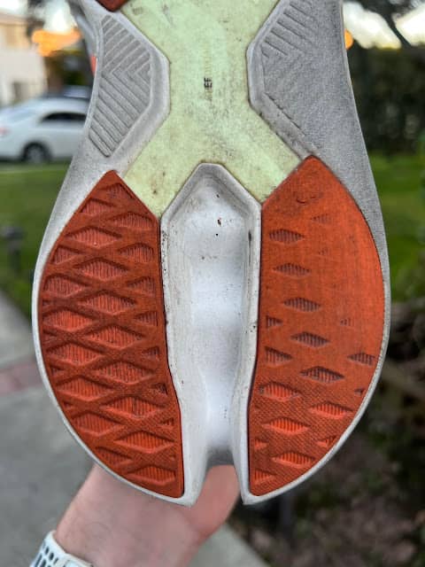 However, the size of the shoe and the fact the foam reacts a little slow make it feel far better to take the On Cloudeclipse out for easier paces. Given that this is such a tall stack height shoe, the On Cloudeclipse is best kept to the road. This is not an overly stable shoe so solid stable terrain is best for it. There are no major forms of traction and I have had a few rocks get stuck in the midline groove, so I would keep this on smooth surfaces. Durability-wise this shoe has lasted fairly well over the 35 miles of testing. I am seeing some mild abrasion at my normal posterior lateral heel, so I expect this shoe to last an above-normal amount of mileage given the midsole design and additional outsole rubber.