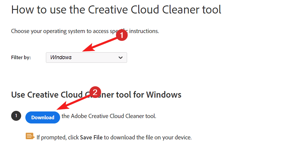 - Navigate to the download web page of the Adobe CC Cleaner tool.