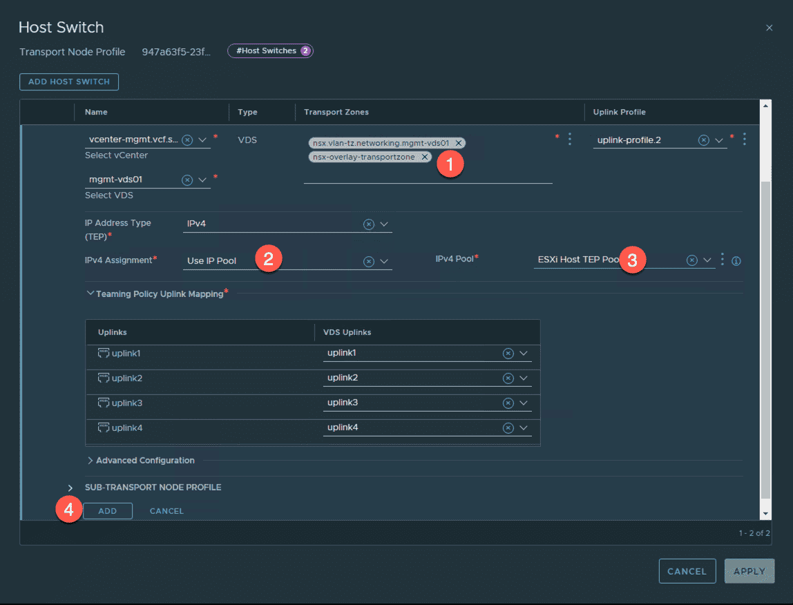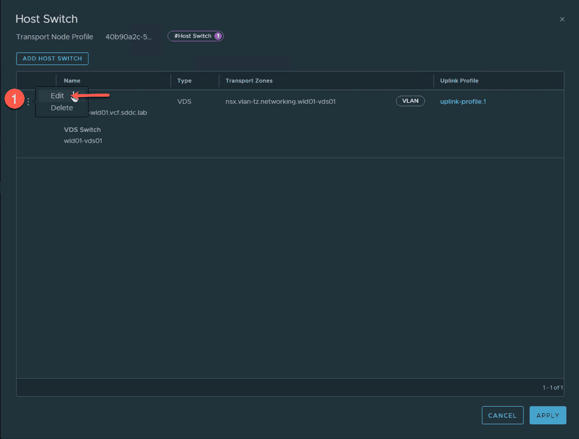 In this example, there is only one host switch. In the event you have multiple switches, make sure you edit the host switch with the uplinks that you want to configure as TEPs.