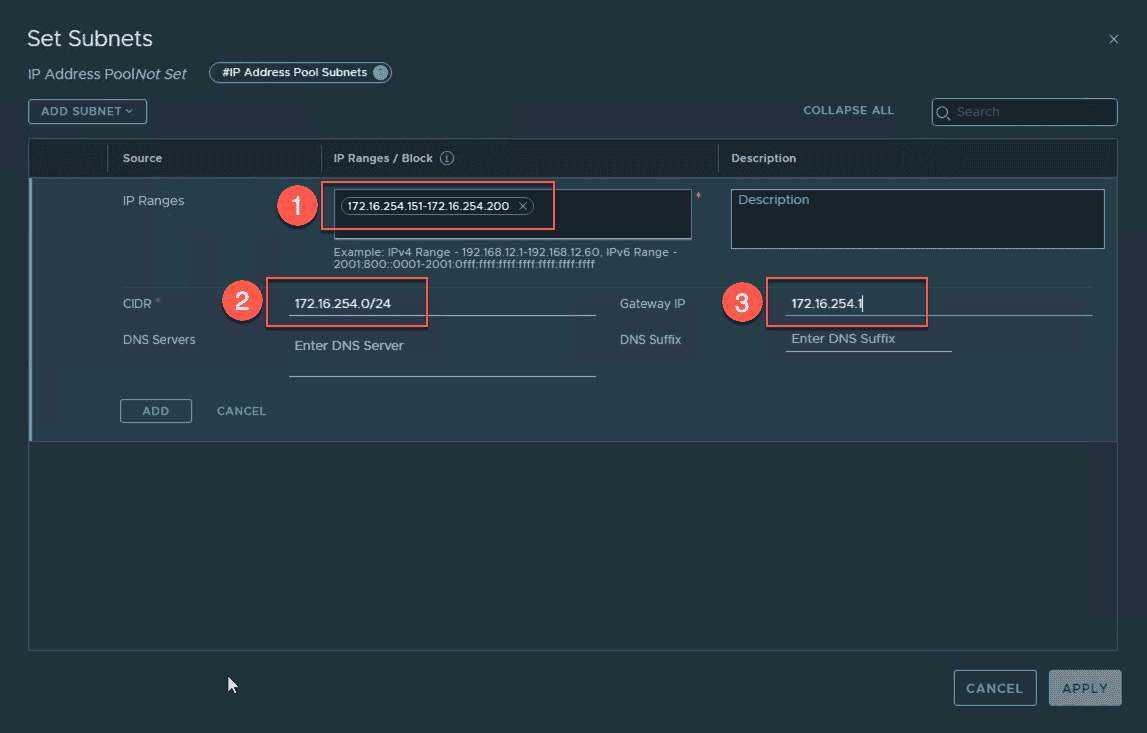 In this example, I am using the subnet 172.16.254.0/24 for my host TEPs. I will create an IP Pool named “ESXi Host TEP Pool” with a range of fifty addresses (172.16.254.151-172.16.254.200).