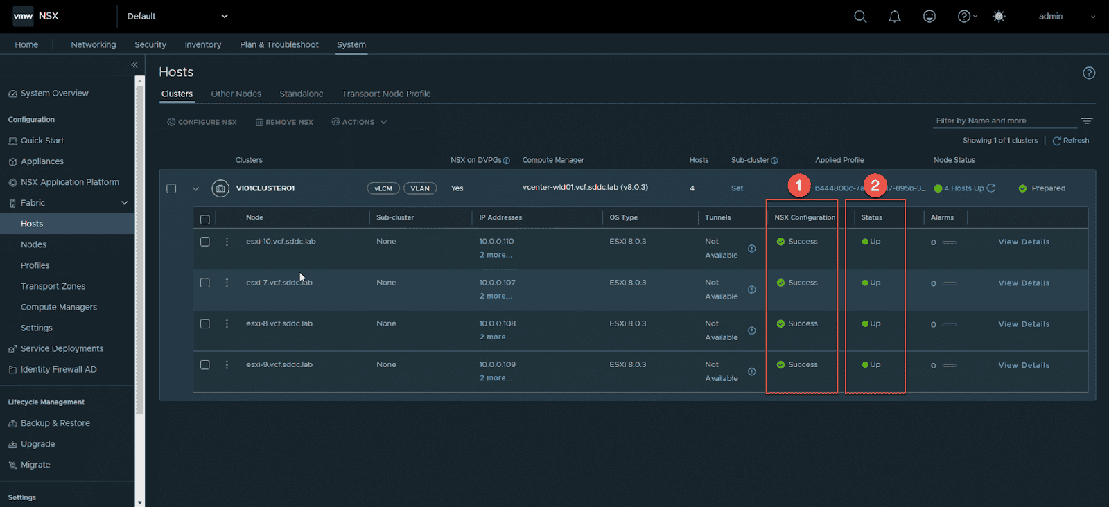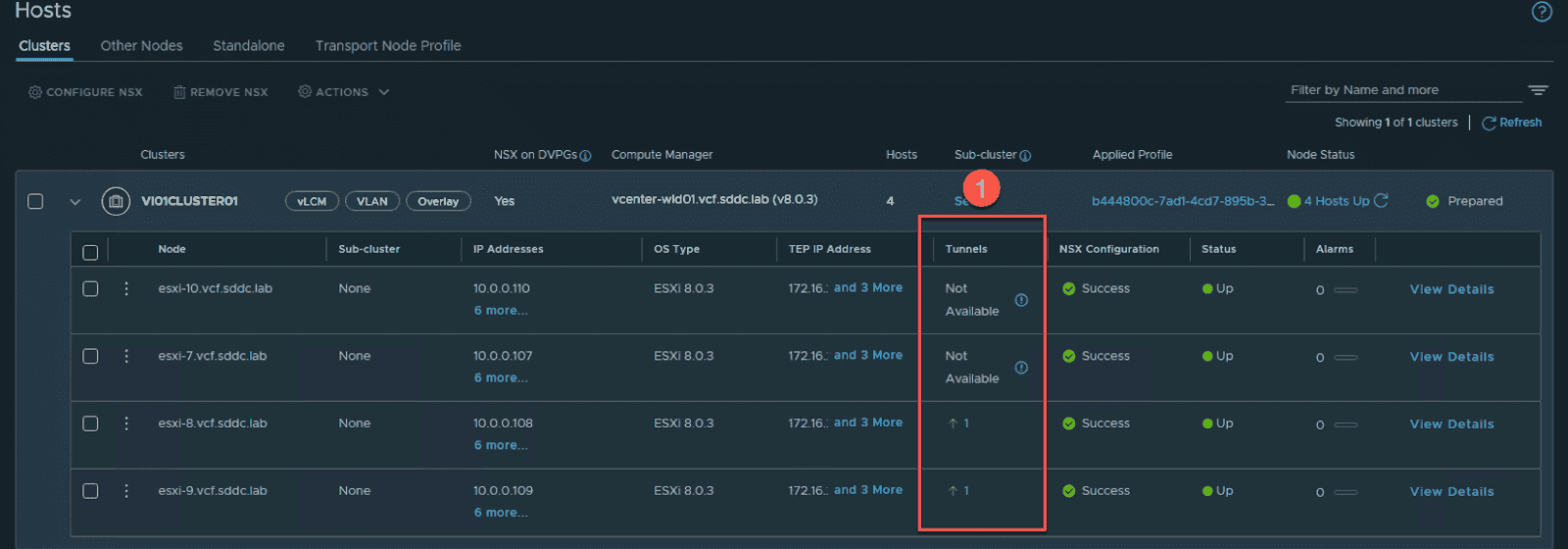 Note that in the example below there is a single vSphere cluster. If you have multiple clusters in your domain, be sure to verify the NSX configuration of all hosts in each cluster.
