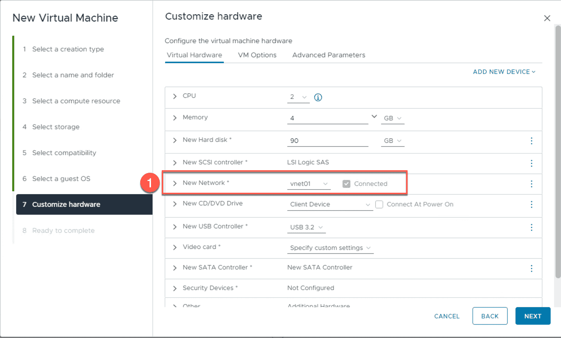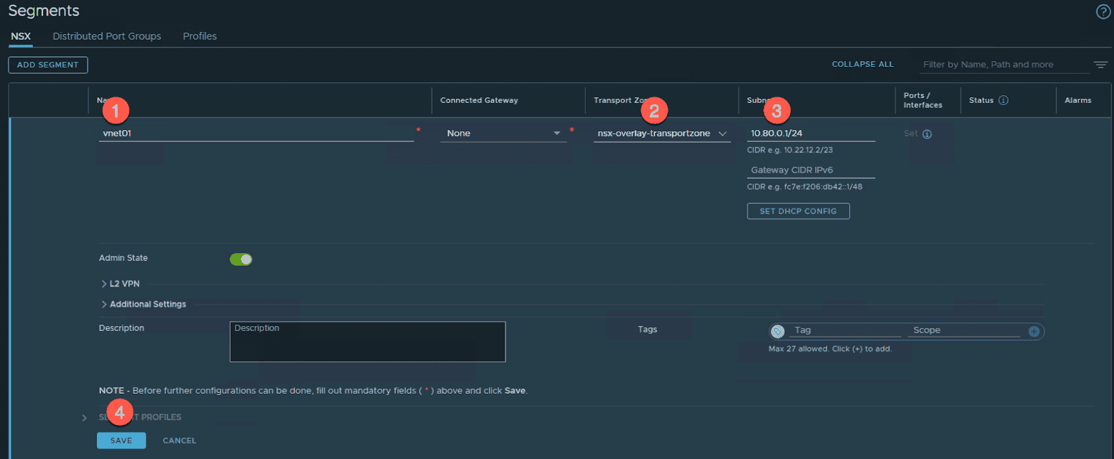 Begin by creating a virtual network (aka virtual segment) in NSX.