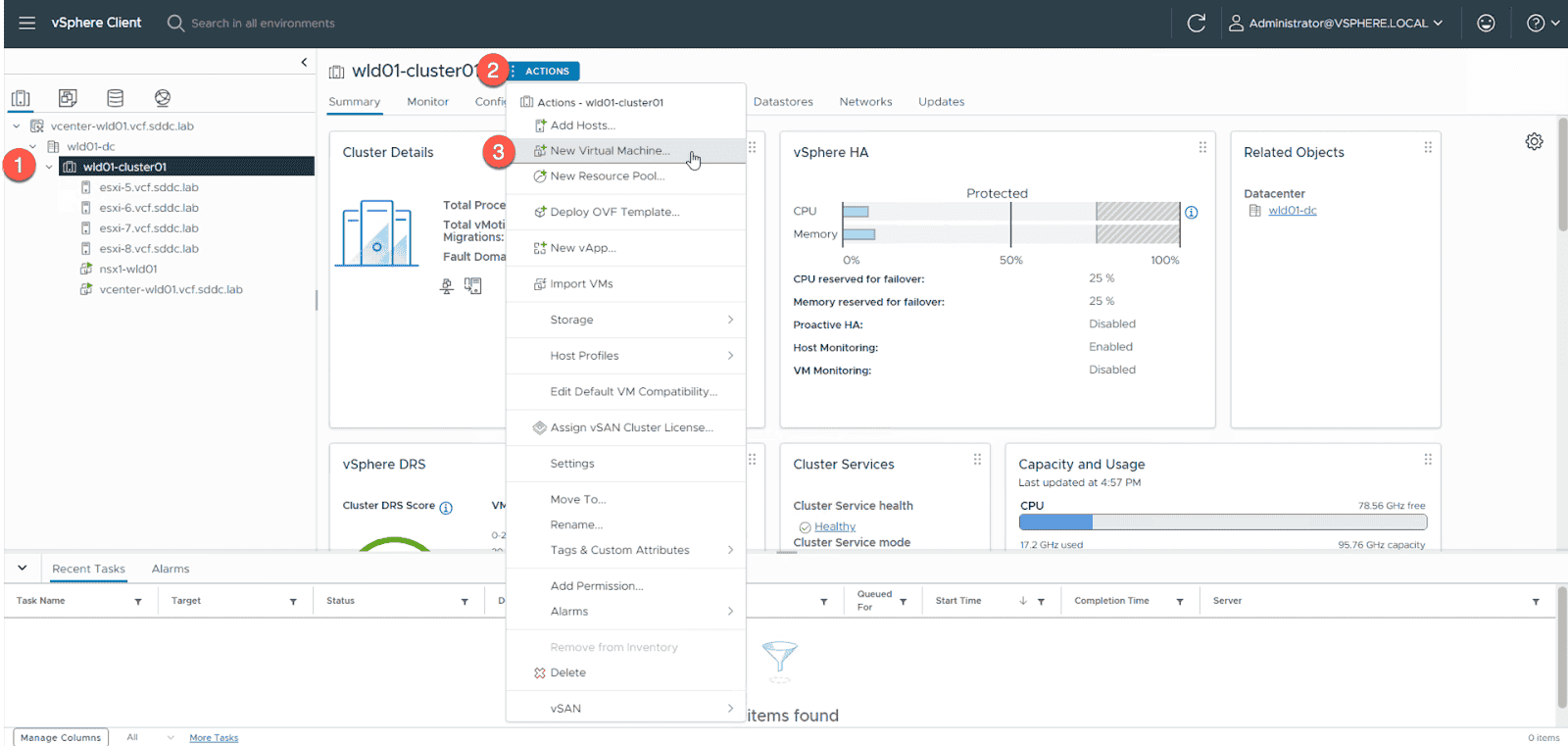 - Navigate: Hosts and Clusters -> Expand vCenter inventory