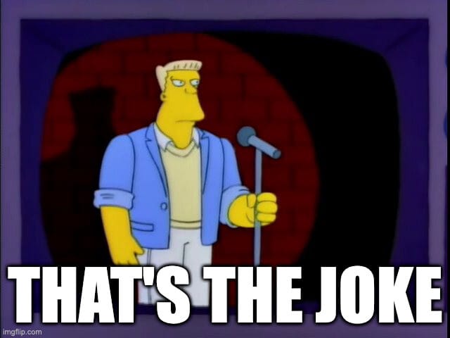Why It Became a Meme: As the saying goes, everyone’s a comedian, especially on the internet, so the meme is often used to lampoon any lame attempt at humor. It’s become so popular that sometimes it’s only necessary to type out “thatsthejoke.jpg.”