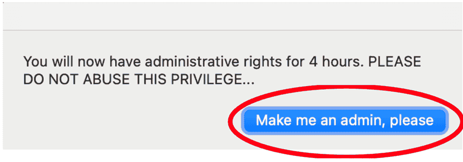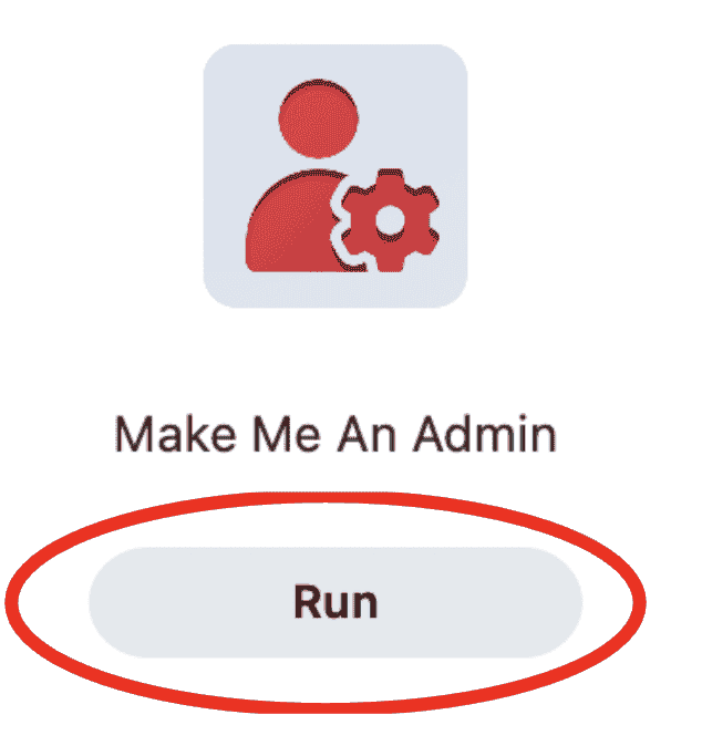 2. Run the Make Me An Admin policy to elevate your account with temporary admin access to accept software installation modifications