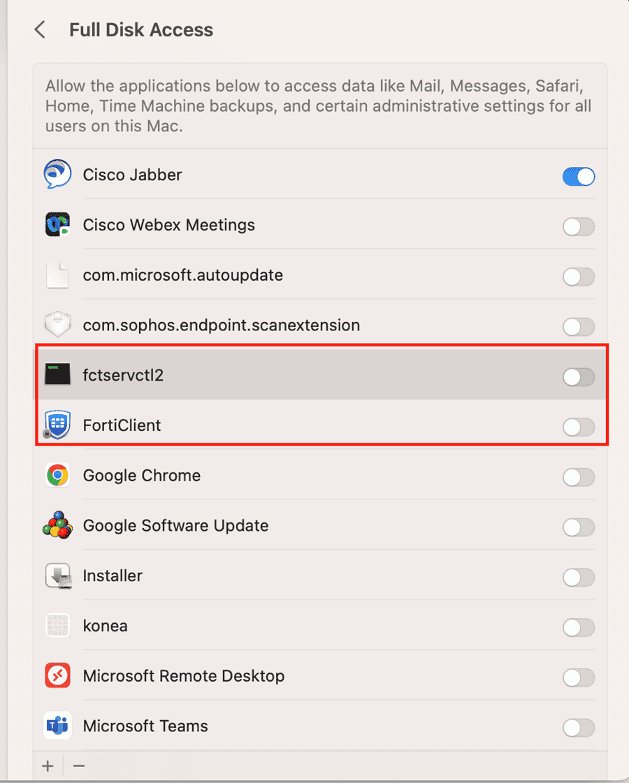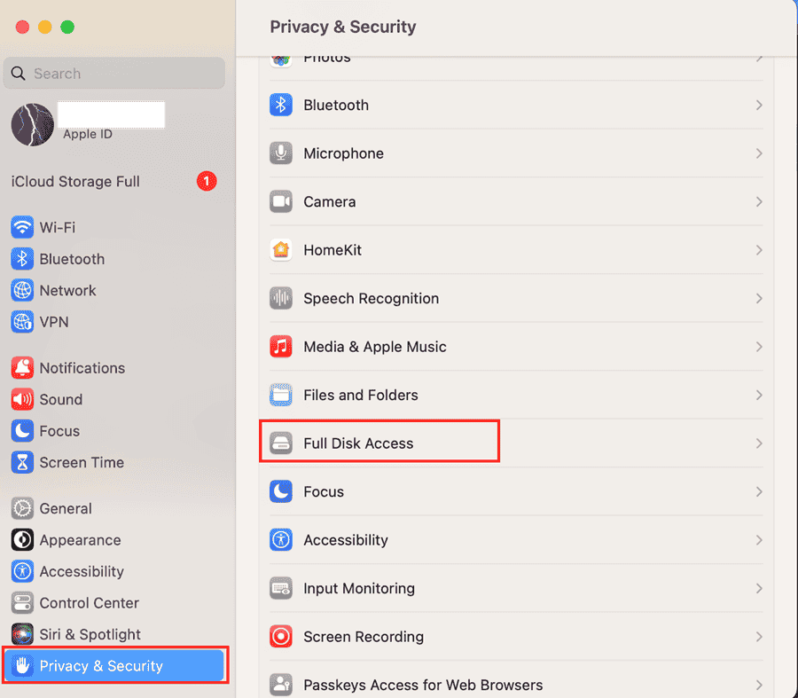- Select Full Disk Access