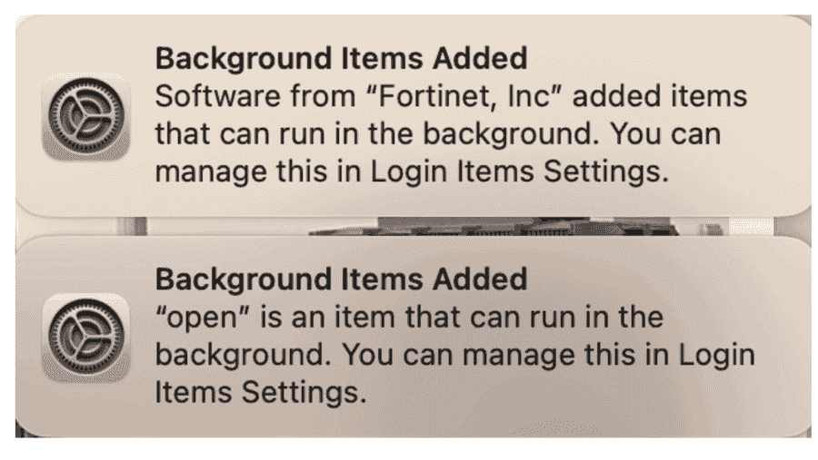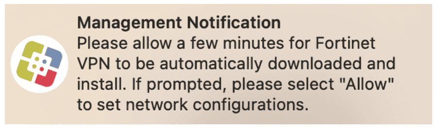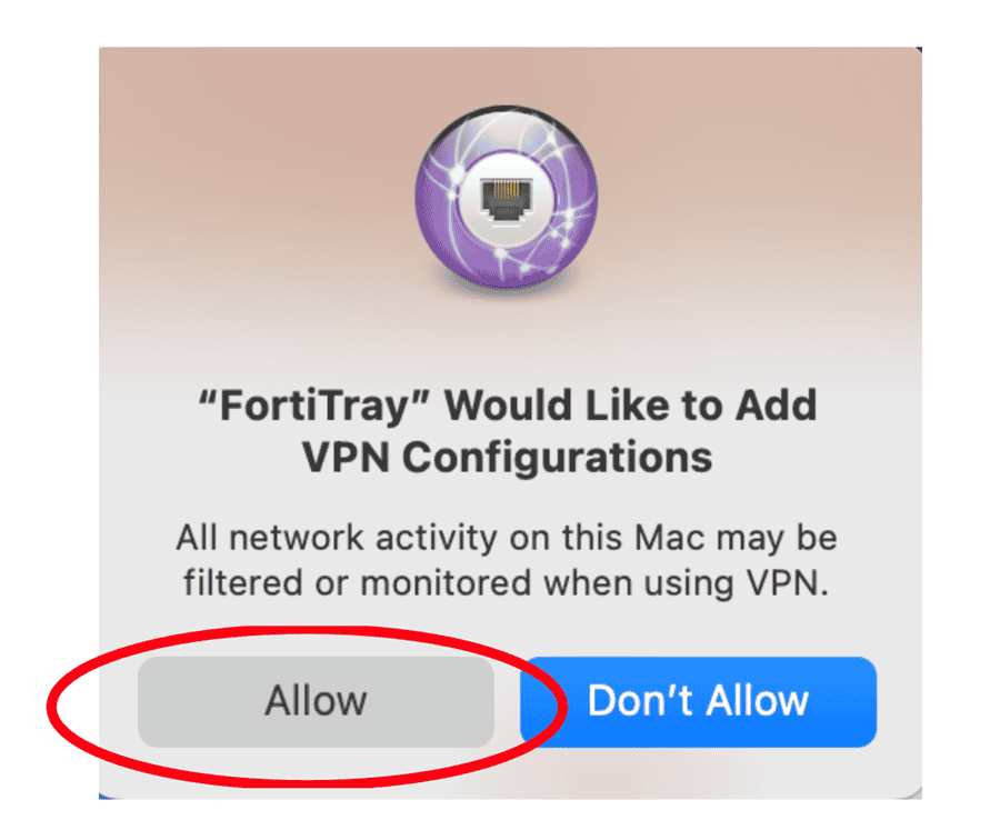 - Select Allow near the message “FortiTray was blocked from loading”