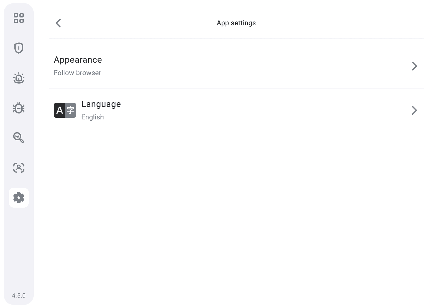 In the App settings tab, you can change the extension’s language and change the app’s appearance – from light mode to dark mode.