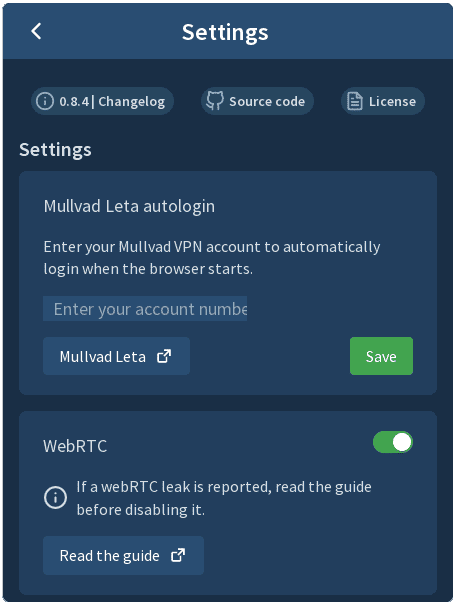 The Mullvad Browser Extension comes pre-installed in the Mullvad Browser. It is also compatible with Firefox and any other Firefox-based browser. It is not compatible with Chrome or Chrome-based browsers. To install it in Firefox follow these instructions.