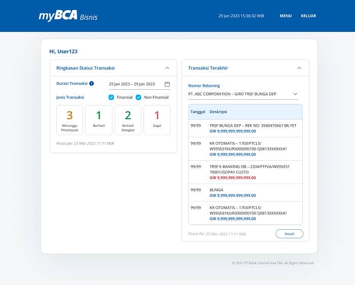 Dengan layanan myBCA Bisnis, nasabah bisa melihat ringkasan status seluruh