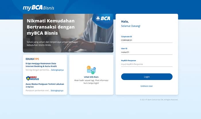 Untuk melakukan login myBCA Bisnis, 3 hal ini diperlukan: Corporate ID, User