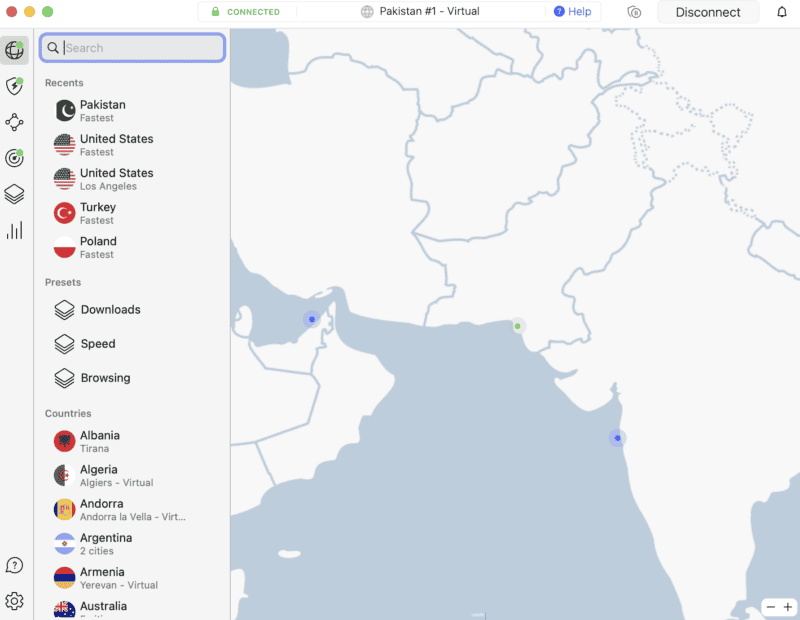 VyprVPN’s UI is rather simple, and connecting to a Pakistani location is very easy.