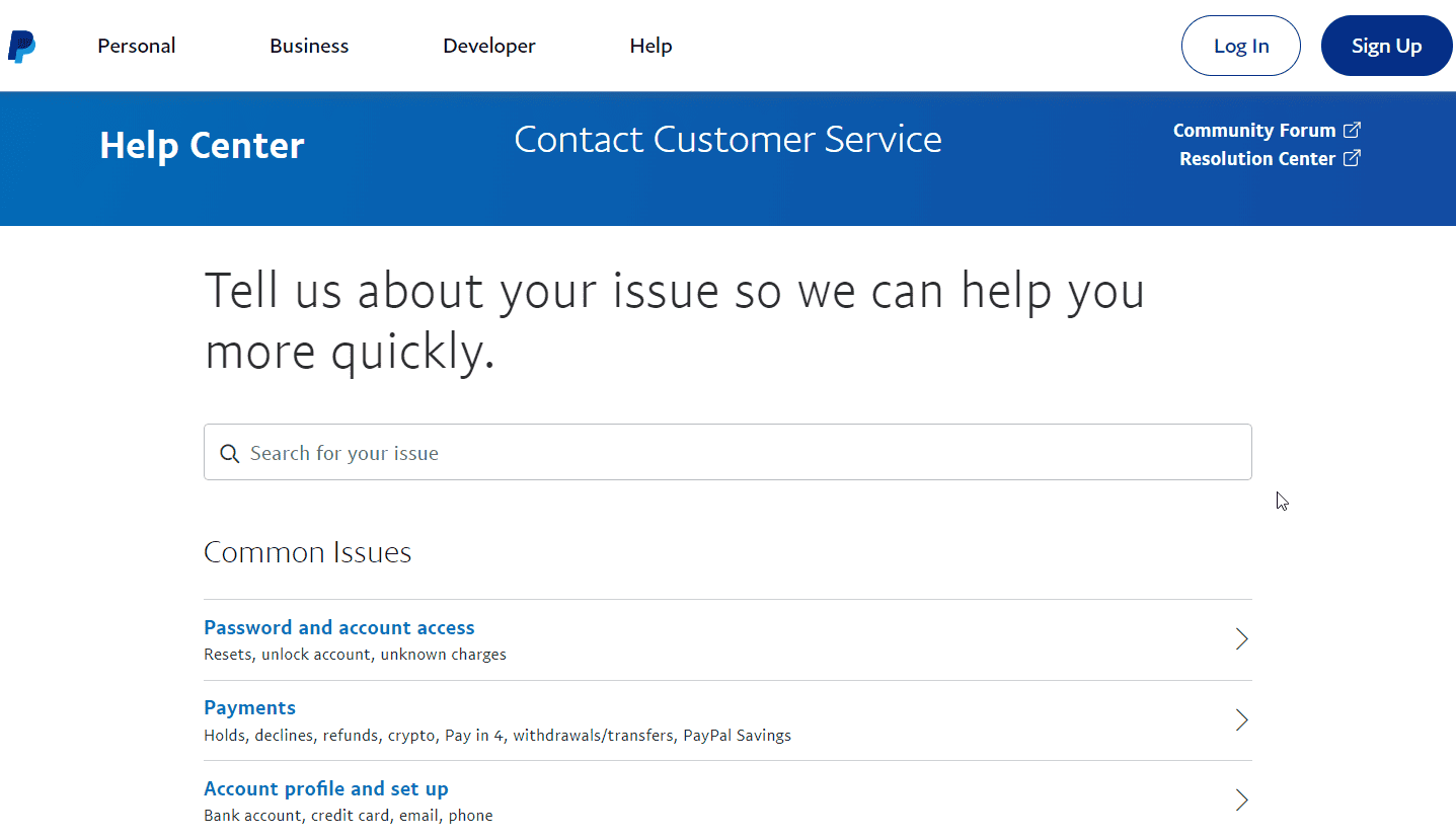 - Visit the PayPal Customer Care page to resolve the issue.