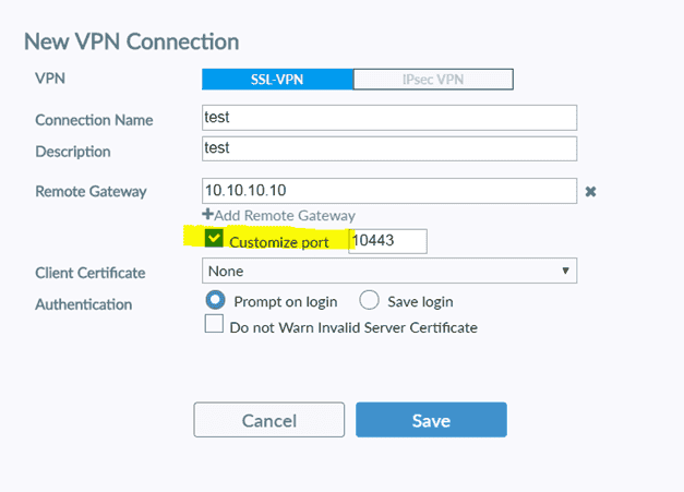Método 4 : agregar un número de puerto personalizado en el cliente ssl-vpn