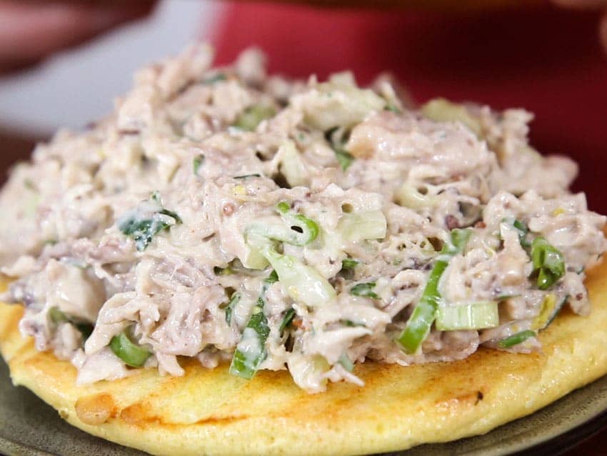 To finish off this low carb chicken salad add some chopped pecans, cooked and chopped bacon, and herbs. If you want to add some sliced grapes or dried cranberries, that would be awesome, but then it would be paleo, and not keto.