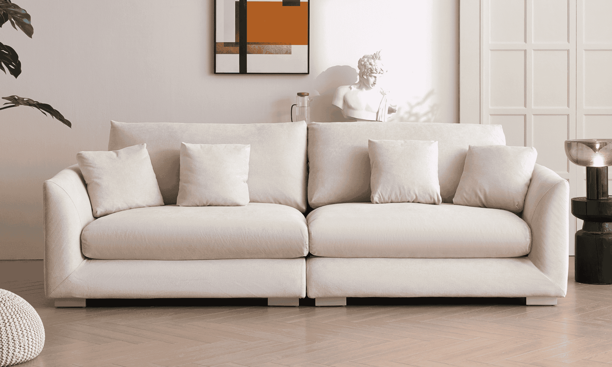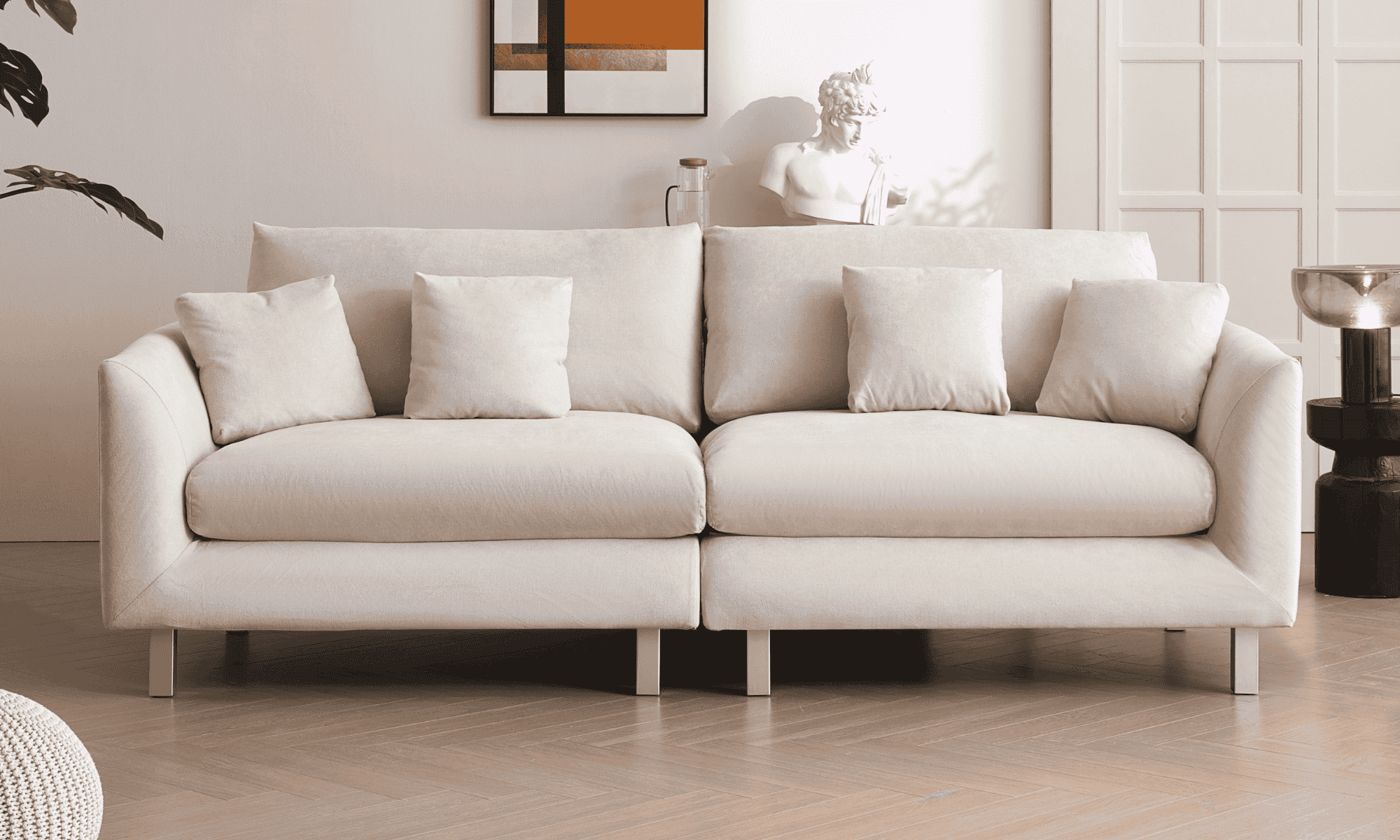 Feathers collection have 10mm Dubetina, a soft and smooth cotton, providing extra layer of support. Its breathability and moisture wicking properties help to keep the sofa cool and dry. Additionally, the fabric is durable and designed to resist fading, pilling, and wear and tear.