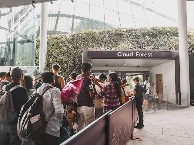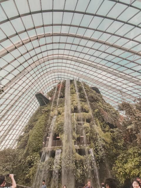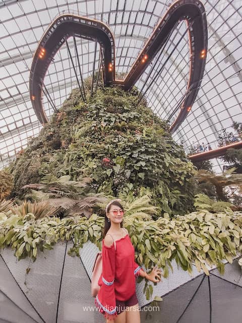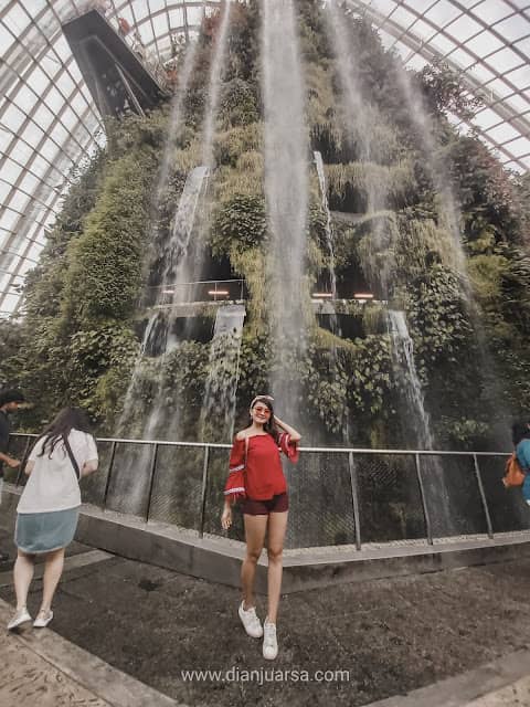 Jangan heran dengan antrian di Cloud Forest karena di dalamnya terdapat air terjun buatan yang begitu tinggi. Selama antrian, saya menghabiskan waktu hampir setengah jam lamanya. Itu pun bisa dibilang termasuk paling cepat karena kebetulan saat antri tidak terlalu jauh dari pintu masuk.